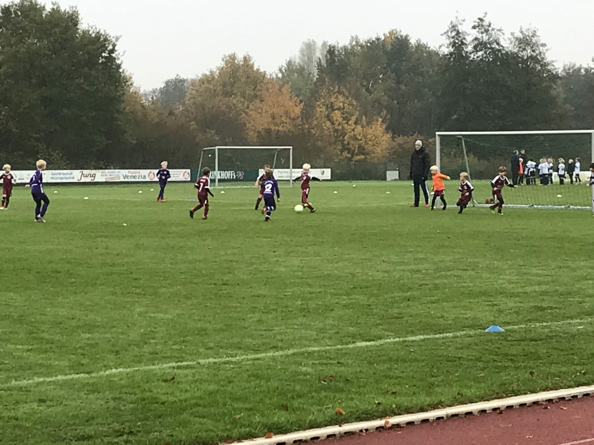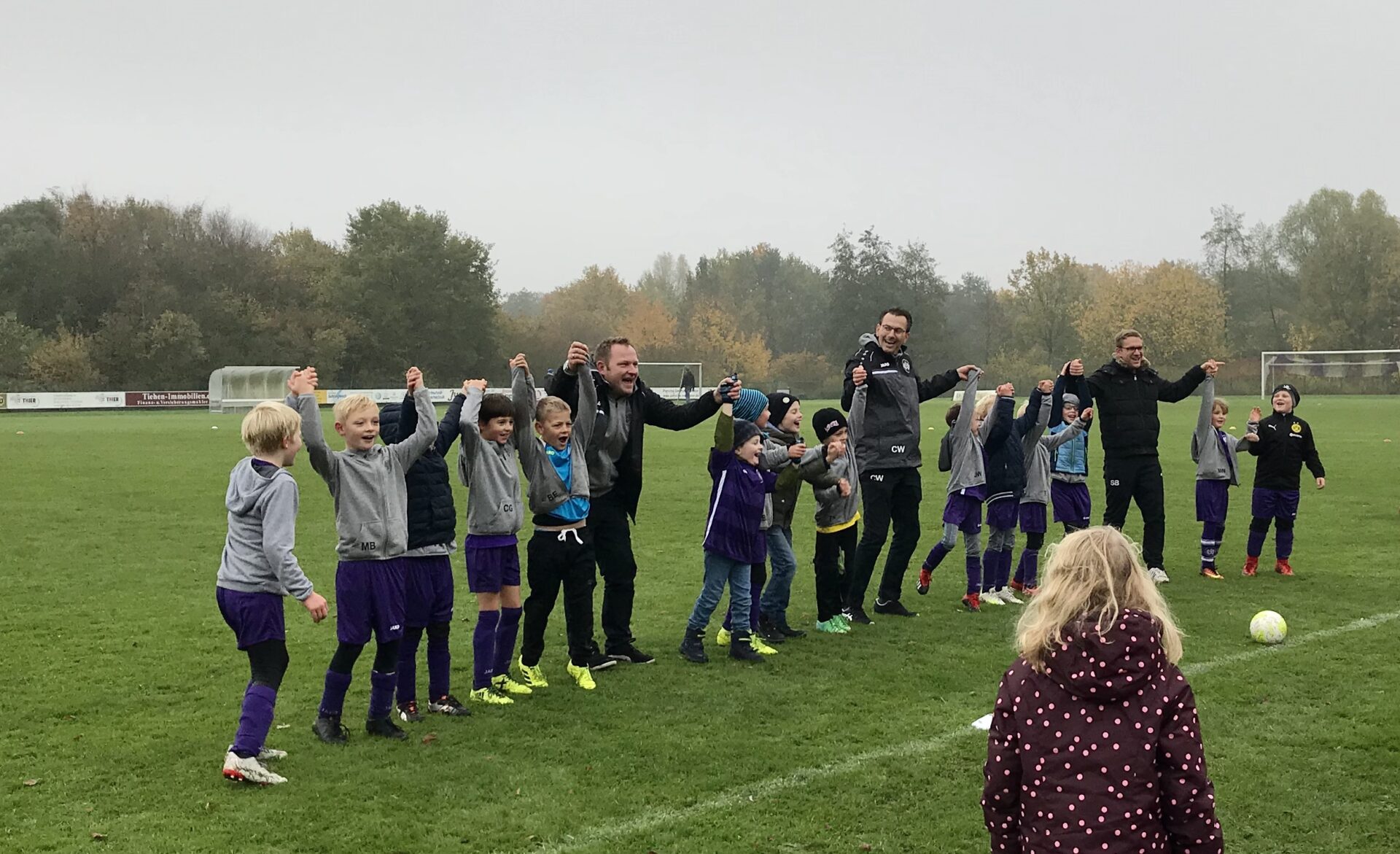 Am vergangenen Samstag, den 09.11. zeigten die Jungs von Wackers U8-Mannschaft beim letzten Spiel der Draußen-Saison gegen Gievenbeck U8 II mit einem 13:0 – Sieg noch mal alles, was sie in den letzten Monaten gelernt hatten. Der Ball landete von Beginn des Spiels an nahezu alle 2 Minuten gekonnt im gegnerischen Tor, sodass die Jungs schon zur Halbzeit (7:0) jubelnd zu ihrer Fangemeinde, den Eltern und einigen Großeltern am Spielfeldrand, flitzten. Der Sog des Balls setzte sich in der zweiten Halbzeit genauso fort, sodass die Jungs am Ende mit 13 Toren (von insgesamt 6 Torschützen!) ihr Glück kaum fassen konnten. Wie die echten Profis verabschiedeten sich die Jungs mit ihren Trainern von ihren Fans und wurden am Ende mit „Pommes für alle“ belohnt…