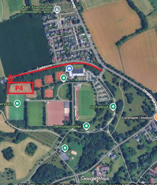 Solltet ihr mit dem Auto kommen, nutzt bitte unseren Ausweichparkplatz „Platz 4“, erreichbar über die Egelshove.