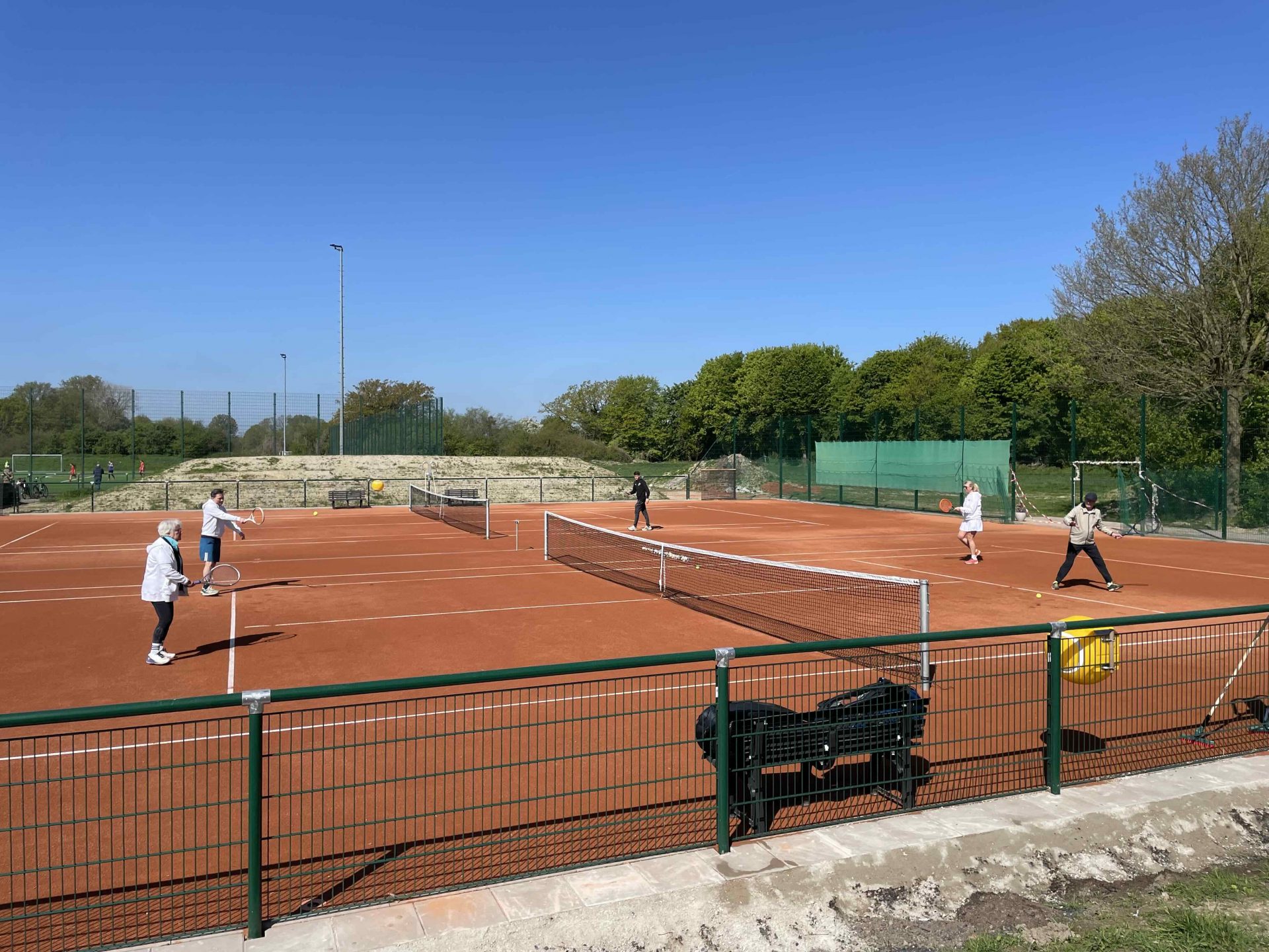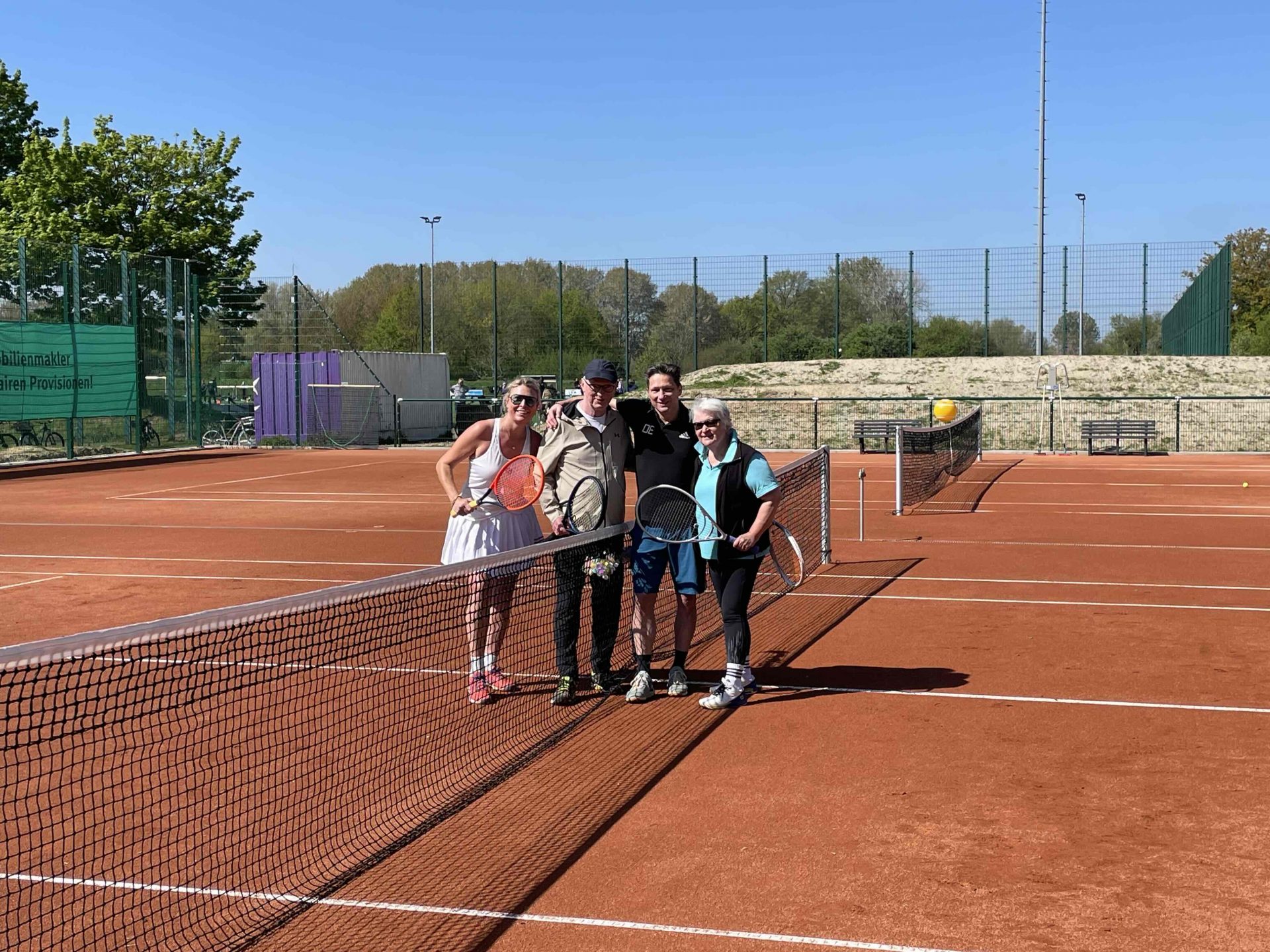 Am Samstag, 25. April, startete die Tennsiabteilung mit viel Energie und bei bester Stimmung in die neue Saison. Besonders gefeiert wurde die Einweihung der frisch gebauten Plätze 7 und 8. Zur Eröffnung lieferten sich Uta Bednarz, Isabel Schepers, Detlef Bärhold und Oliver Eggers ein unterhaltsames Doppelmatch, das die neuen Plätze würdig einweihte.